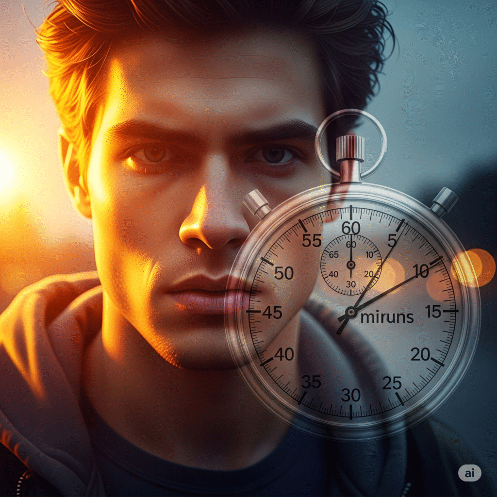 Imagery Idea: Stopwatch overlay on glowing portrait — “10 minutes” bold text.